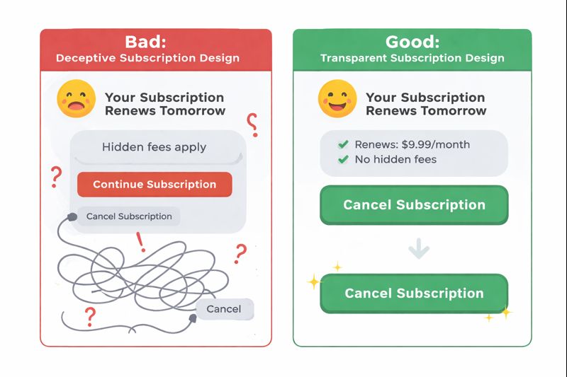 User-centred options would be simple things such as providing clear pricing, providing a visible cancellation option, and providing honest messaging to the consumer. Research and actual industry examples demonstrate that using transparent design to the user will often lead to a higher level of long-term retention, proving that user and business objectives do not need to be mutually exclusive.